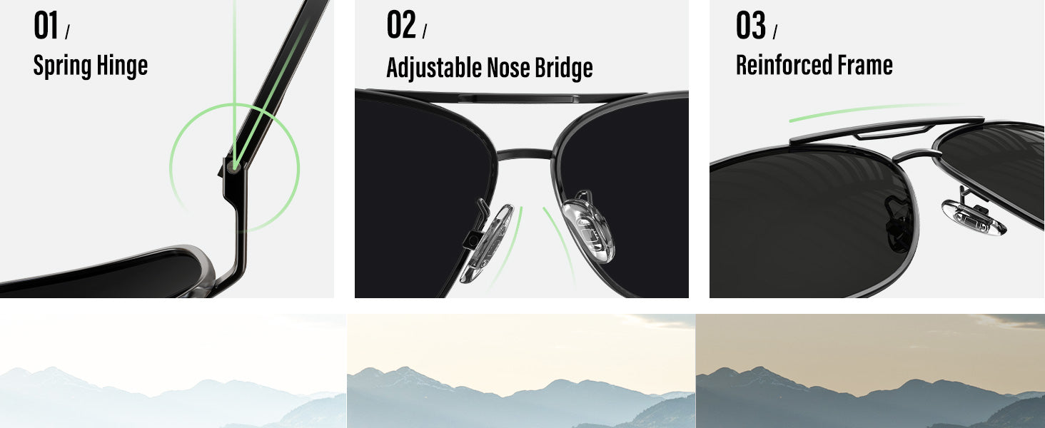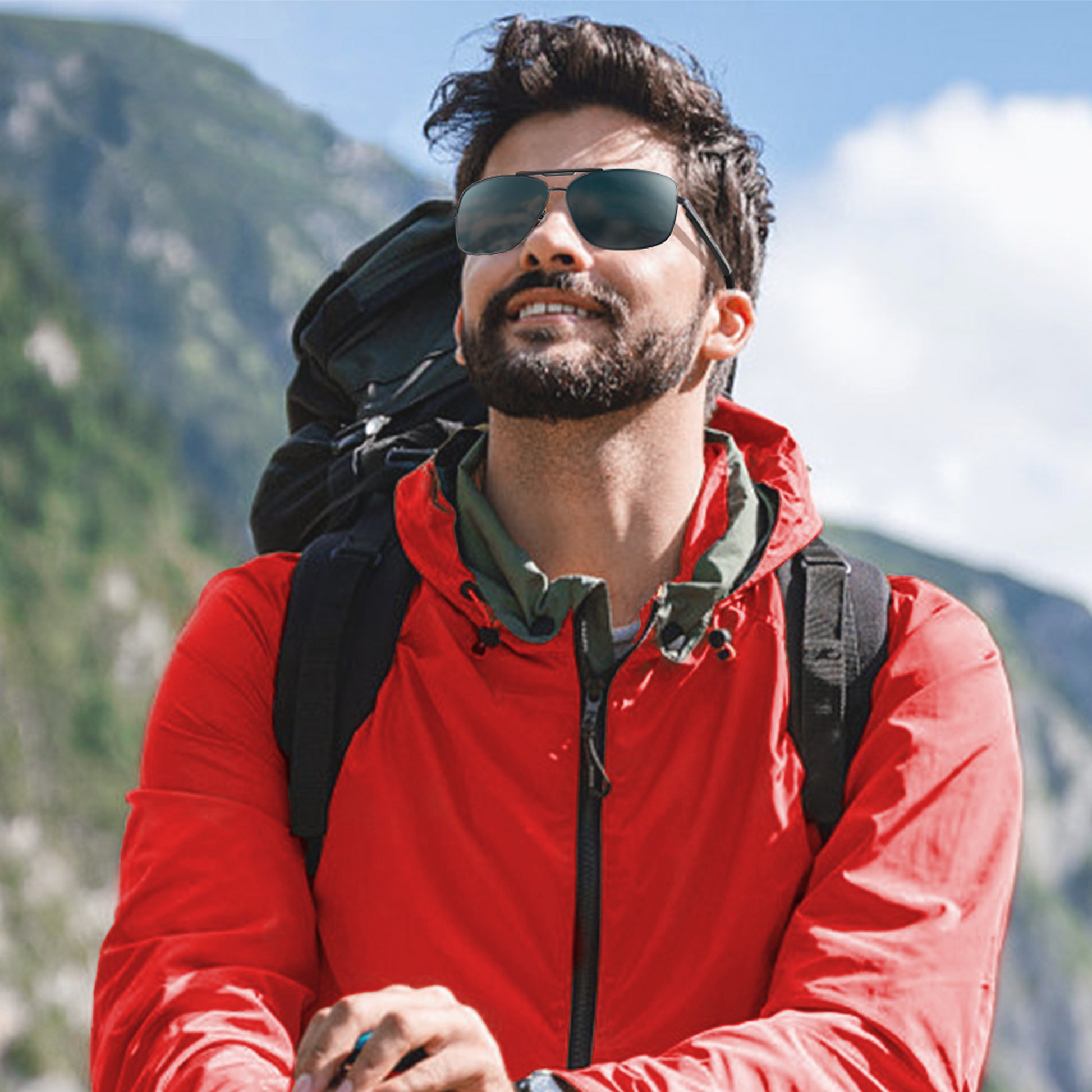 With a sleek aviator silhouette, spring hinges, and lightweight metal frame, these sunglasses combine classic appeal with comfort. Adjustable silicone nose pads and hydrophilic ear grips ensure a secure fit all day long — style and performance in one.
