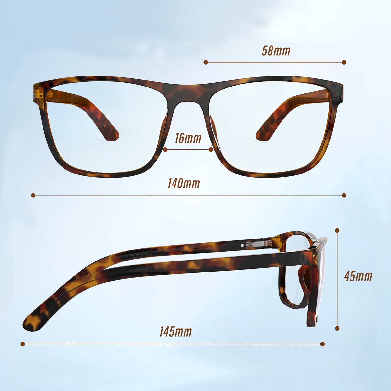 Built with a lightweight TR90 frame and flexible spring hinges, Leah S. is designed for long, comfortable wear. The unibody structure distributes pressure evenly, making the glasses feel nearly weightless—even after 12 hours. With a classic square shape that suits many face types, they’re ideal for driving, working, and daily use.