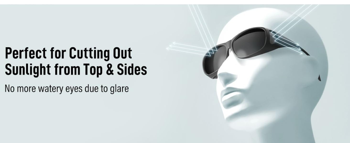 Designed to fit over most eyeglasses, these lightweight sunglasses stay securely in place thanks to their non-slip build. The wrap-around frame blocks sunlight from the top, sides, and front, offering full protection for dry eyes and hay fever sufferers during hiking, fishing, cycling, and more.