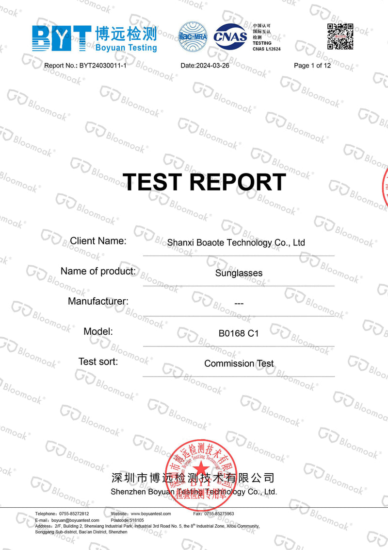 Every Bloomoak product is manufactured under internationally recognized standards covering safety, optical precision, and sustainability. Our quality is backed by rigorous third-party certifications. Even fractions of a millimeter matter — which is why every finished product is individually inspected before shipment.