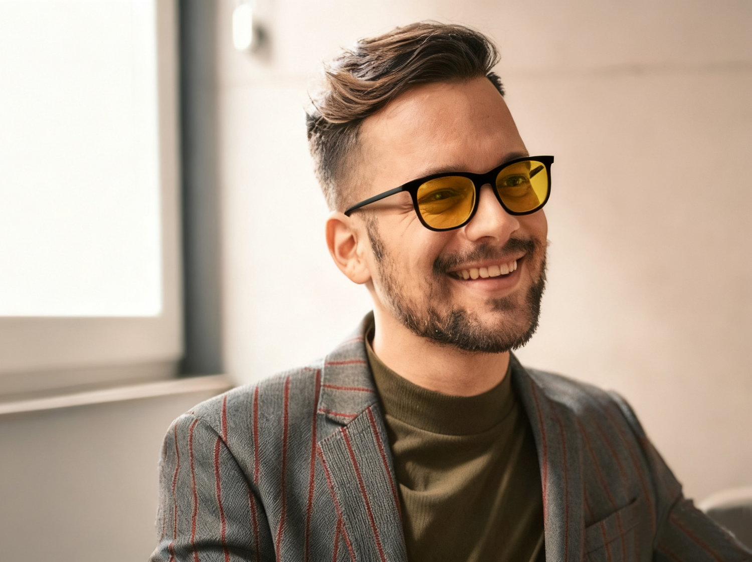Aiden H. Yellow Blue Light Glasses filter out 65% of blue light from screens, reducing glare and visual fatigue. The premium TR90 frame is lightweight yet durable, with scratch-resistant lenses that maintain clear, comfortable vision all day long.